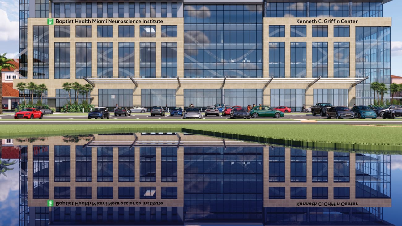 Miami Neuroscience Institute is currently developing the Kenneth C. Griffin Center, a new, state-of-the-art facility that will house the Institute’s growing physician team and offer comprehensive brain and spine care for patients on the campus of Baptist Health Baptist Hospital in Miami. Along with cutting-edge laboratories equipped with the latest technologies, the new building will provide space for Baptist Health to conduct studies in the same facility where patients are treated, strengthening collaboration between researchers and clinicians and advancing the Institute’s research in neuroscience and neurodegenerative disorders.