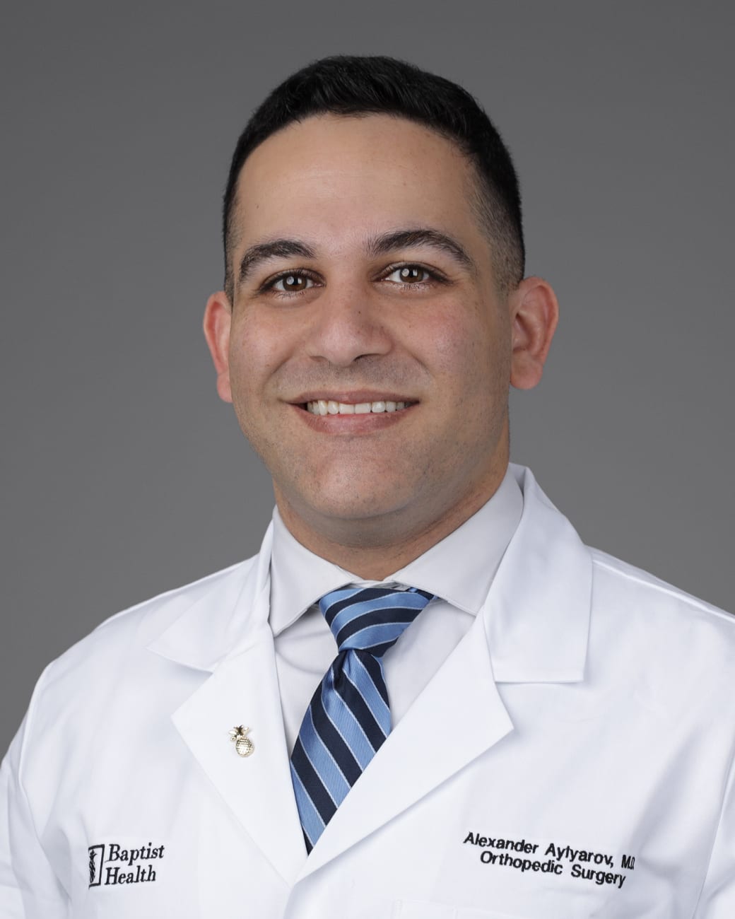 Fellowship-trained orthopedic surgeon Alexandr Aylyarov, M.D., has joined Baptist Health Orthopedic Care. He specializes in diagnosing, treating and preventing sports-related injuries. He is passionate about the treatment of musculoskeletal injuries throughout the body and the care of athletes of all levels, whether recreational or competitive. He has expertise in minimally invasive, arthroscopic sports medicine surgery, including arthroscopic treatment of the knee, shoulder and elbow as well as treatment of fractures and joint replacements.